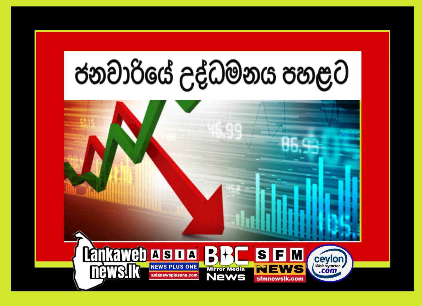 ජනවාරියේ උද්ධමනය පහළට 2026 ජනවාරි මාසය සඳහා ශ්රී ලංකාවේ ජාතික පාරිභෝගික මිල දර්ශකයට අනුව උද්ධමනය ප්රකාශයට පත්කර තිබේ.
