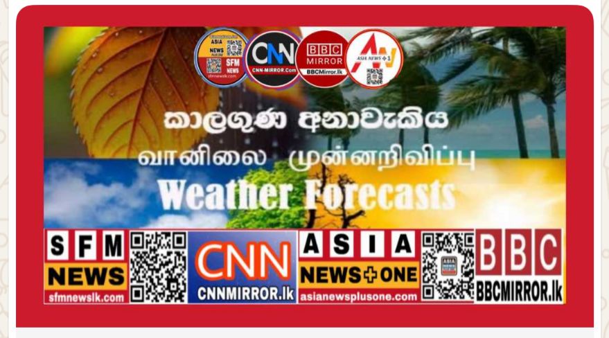 බස්නාහිර, සබරගමුව, මධ්යම, වයඹ, දකුණු සහ උතුරු පළාත්වල විටින් විට වැසි හෝ ගිගුරුම් සහිත වැසි ඇති විය හැකි අතර මෙම ප්රදේශවල ඇතැම් ස්ථානවල මි.මී. 100ට වැඩි තද වැසි ඇති විය හැක.