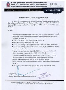 *2026 වසර තුළ 5 -13 ශ්‍රේණි සඳහා පාසල් කාලය පෙ.ව 7.30 – ප.ව 1.30 ලෙස නොවෙනස්ව පවතියි.
