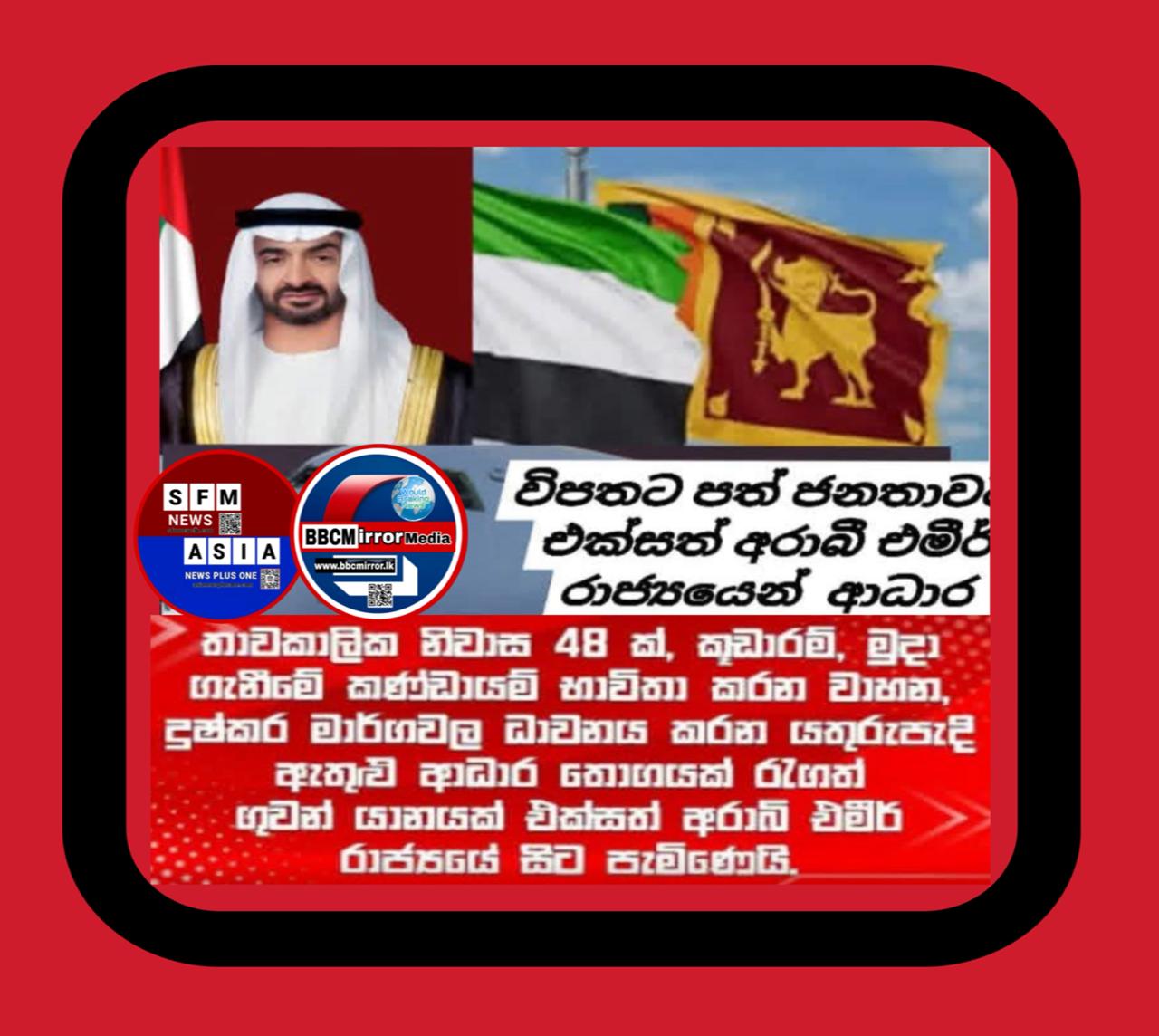 ආපදා තත්ත්වයෙන් විපතට පත් ජනතාව වෙනුවෙන් එක්සත් අරාබි එමීර් රාජ්යයේ ආධාර රැගත් ගුවන් යානයක් අද (02) අලුයම මෙරටට ළඟා විය.